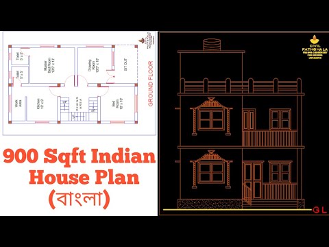 900 Sqft Indian House Plan BANGALI Front Elevation Sectional Elevation Building design Durasi : 11:03